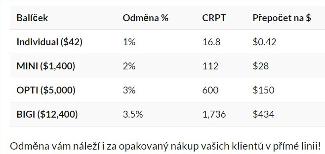 Společnost Cryptonit poskytuje tyto zvýhodněné balíčky určené pro